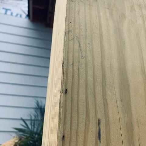 Carpenter bees are wood-destroying insects that don't eat wood, but bore into it to create their galleries (nest). There are several ways to tell if you have a carpenter bee infestation. Those are to look for the almost perfect 1/2 drill holes, the yellow fecal stains underneath the drill holes, and the buildup of frass underneath or nearby their galleries.