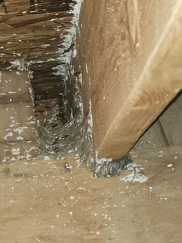 I then went into her crawlspace to locate the source of the swarm. Directly under the bathroom was the Termite mud tube the swarmers were emerging from.