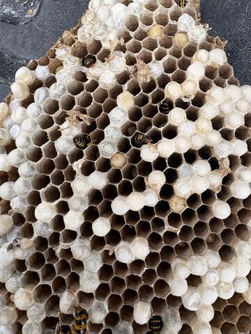 We immediately treated the nest with a knockdown aerosol application, which will rapidly exterminate them. After some time had passed, we removed the nest and disposed of it properly.