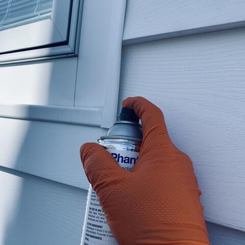 As we were treating the exterior of this home in Belford, NJ, we came across something interesting - a spider and a bunch of it's spiderlings! The first thing we did was grab our spider broom and brushed away all the spider webs around the entire exterior of the home. This will eliminate their food source. After a little while, the spiders will get annoyed and start to leave. Once that was finished, we applied a liquid application, that is specifically labeled to treat spiders, directly to the spider and it's spiderlings. We also applied this application around the entire exterior of the home. This treatment will rapidly exterminate the spiders.