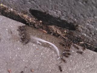 Here, after determining these were flying ants, I located the ant nest. Ants had formed a nest in a bait station. It was an active nest filled with larvae.