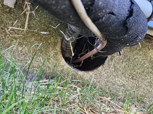 We noticed a large amount of mice droppings throughout the crawl space of this home in Woodbridge, NJ during a routine fall service. In order to determine how the mice were getting into the home, we thoroughly inspected the exterior of the property. Moments into our inspection, we found it! A large gap around one of the utility lines.